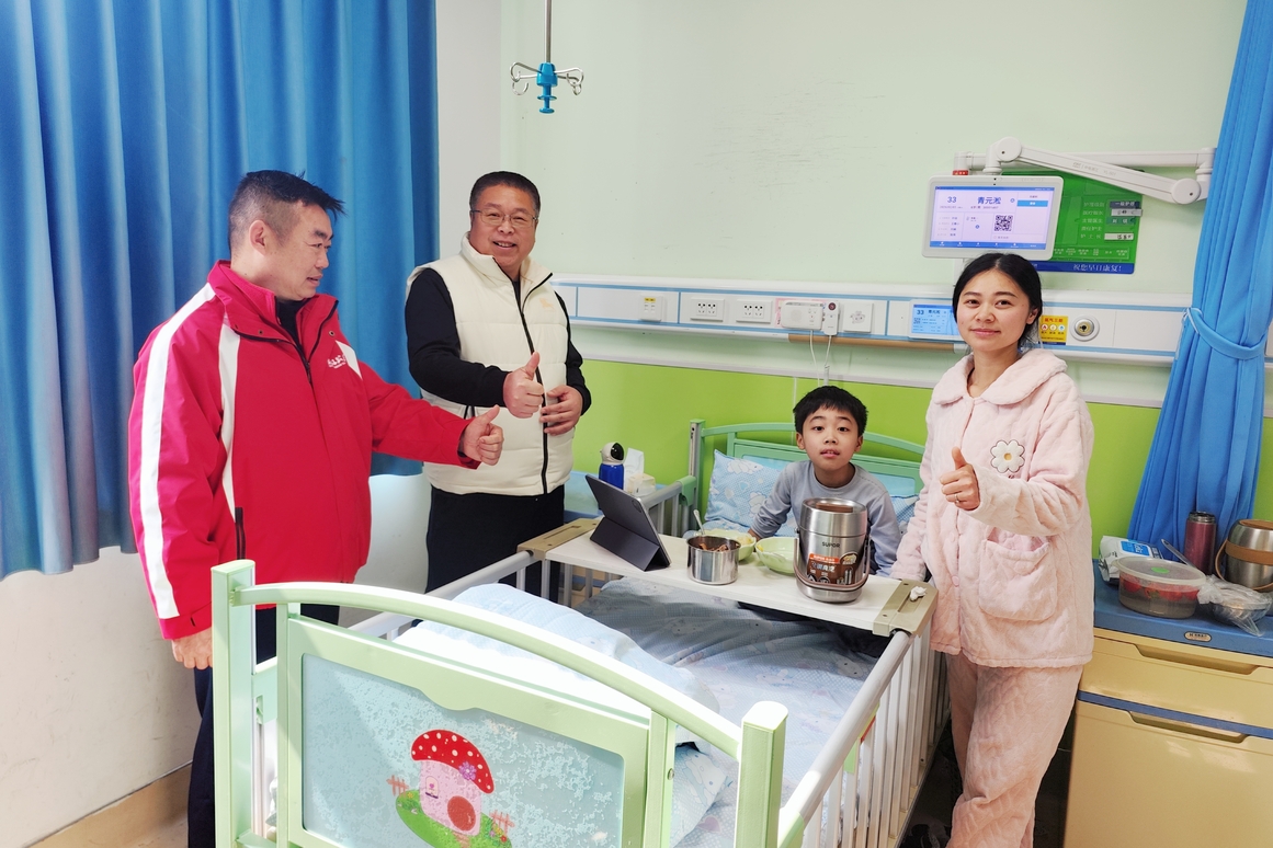 2026年2月11日中午,金高峰会长、杜元军监事、张忠良主任一行三人驱车来到南充市中心医院江东院区,代表团队看望献血者黄春兰生病住院的儿子。