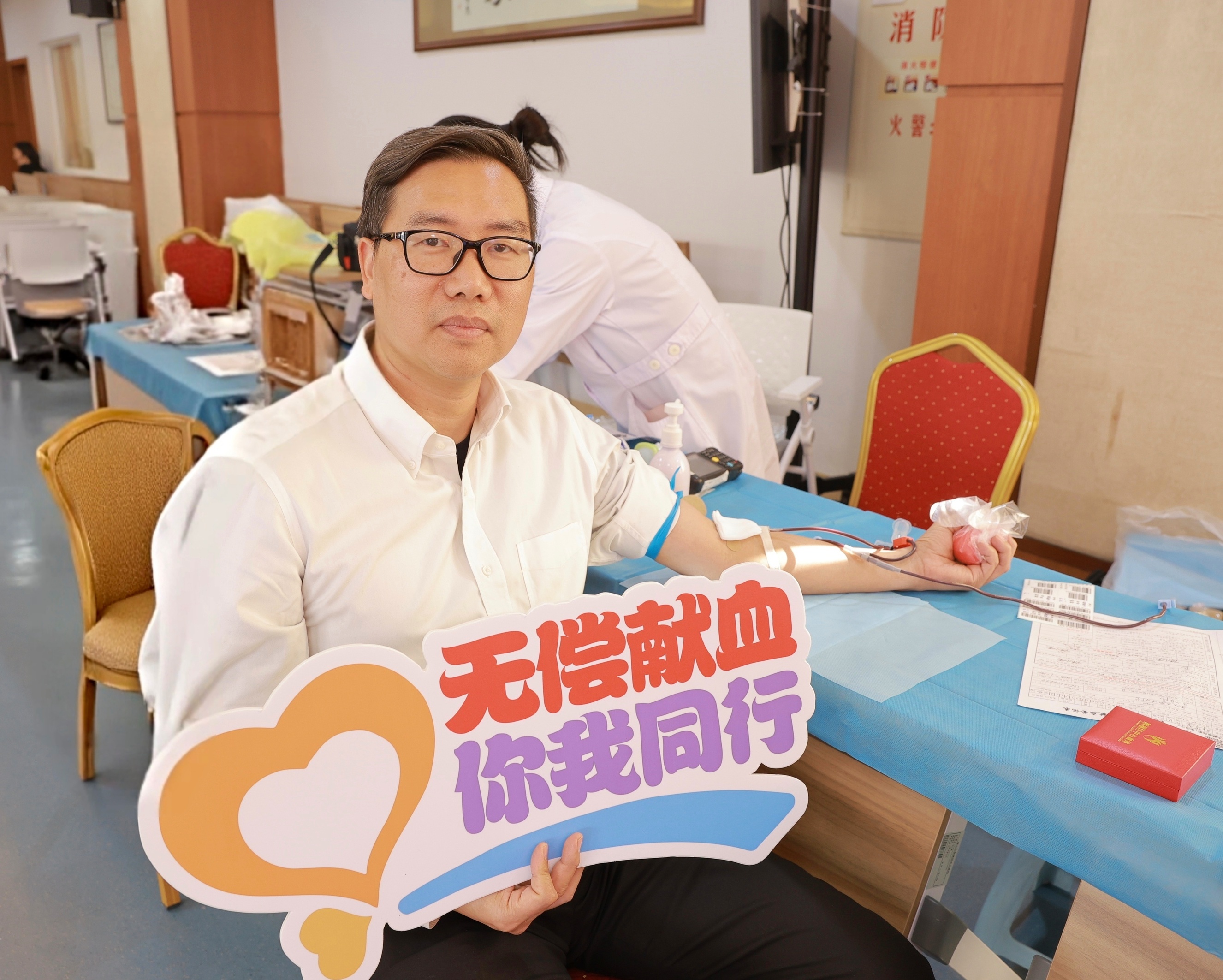 活动现场,乐从医院党委书记郑华婴、副院长潘俊好率先挽袖献血。他们表示,对医务工作者而言,无偿献血不只是一种公益行为,更是一份义不容辞的责任。
