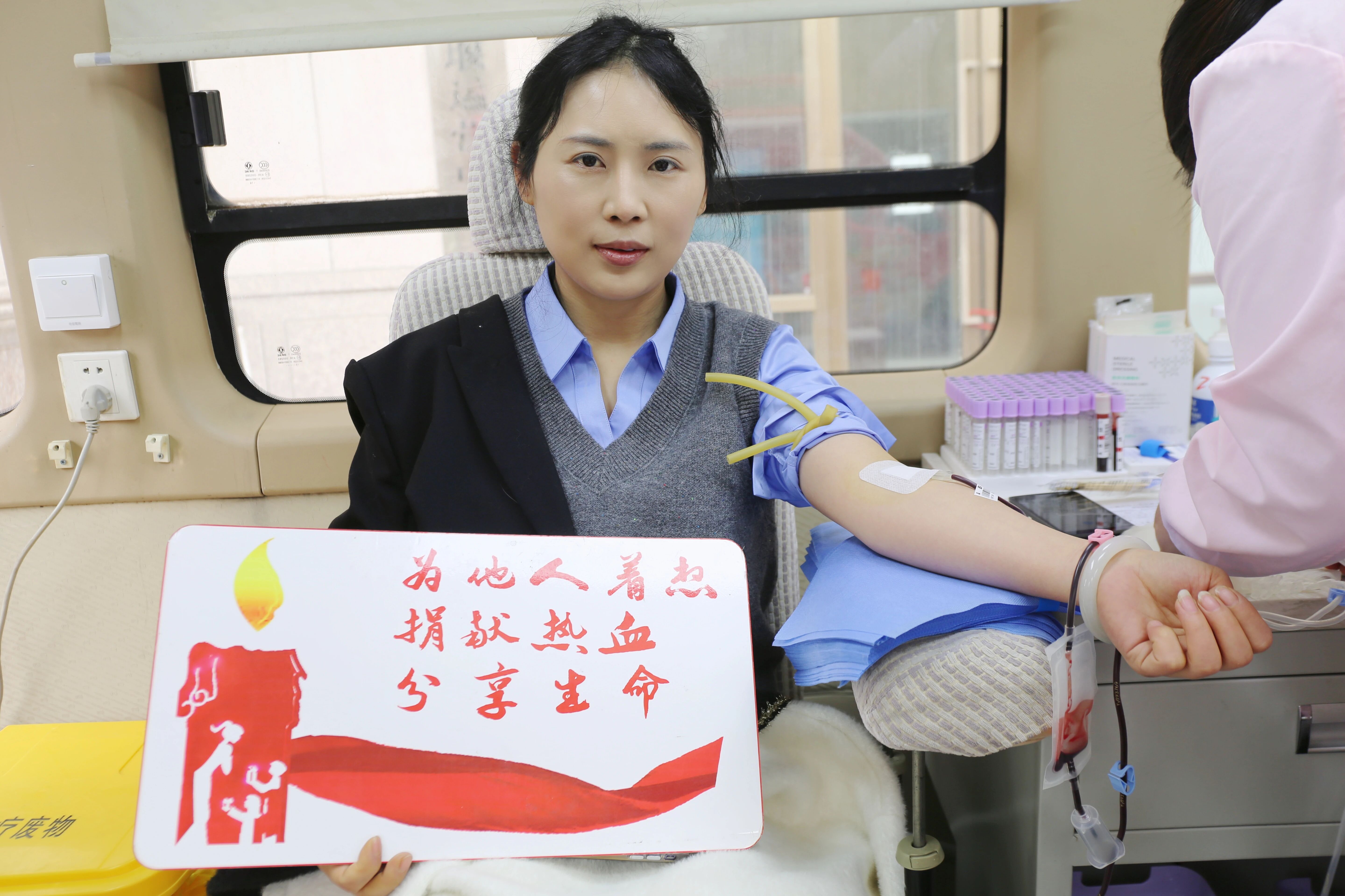 中国大地财产保险股份有限公司十堰中心支公司总经理郭莉莉第一个走上献血车。对她而言,无偿献血并不陌生,因为家中有人长期坚持献血,也享受过无偿献血“三免”政策带来的便利。她说:“中国大地财产保险股份有限公司十堰中心支公司始终热心公益事业。作为企业,参与无偿献血是我们义不容辞的社会责任;作为市民,加入献血队伍是我们应有的公民担当。我们常说保险守护生活,而无偿献血,同样是给自己和家人一份最温暖、最可靠的生命保障。”