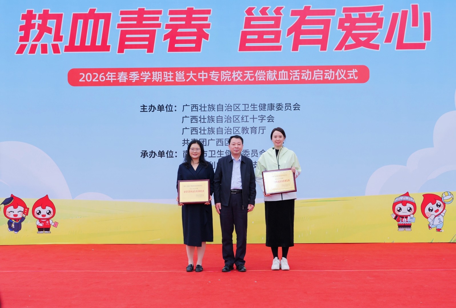2026年春季学期伊始,为激发驻邕大中专院校师生参与无偿献血的热情,巩固高校无偿献血阵地,保障南宁市临床用血安全,3月20日,由自治区卫生健康委、自治区红十字会、自治区教育厅、共青团广西区委联合主办,南宁市卫生健康委、广西水利电力职业技术学院、南宁中心血站共同承办的“热血青春 邕有爱心”2026年春季学期驻邕大中专院校无偿献血活动在广西水利电力职业技术学院(武鸣校区)正式启动。