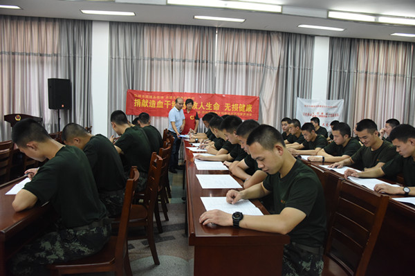 上午8∶00,身着“橄榄绿”的武警战士整齐列队出现在该院餐饮中心的三楼会议室。在献血之前,血站工作人员为准备献血的官兵们宣讲了献血流程及献血前、中、后的注意事项,官兵们认真填写相关表格,积极配合医护人员依次体检等候献血。
