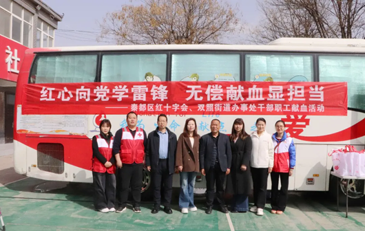 学雷锋,献爱心。3月18日,秦都区红十字会组织双照街道办干部职工开展以“红心向党学雷锋 无偿献血显担当”为主题的无偿献血公益活动,基层党员干部以实际爱心行动弘扬雷锋奉献精神,热血传递正能量。