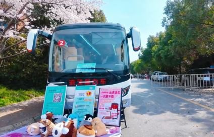 停靠在樱花大道的无偿献血车,