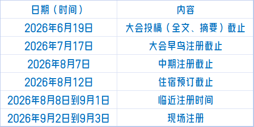 三、大会时间:2026年9月2—4日(2日大会报到,3—4日开会)
