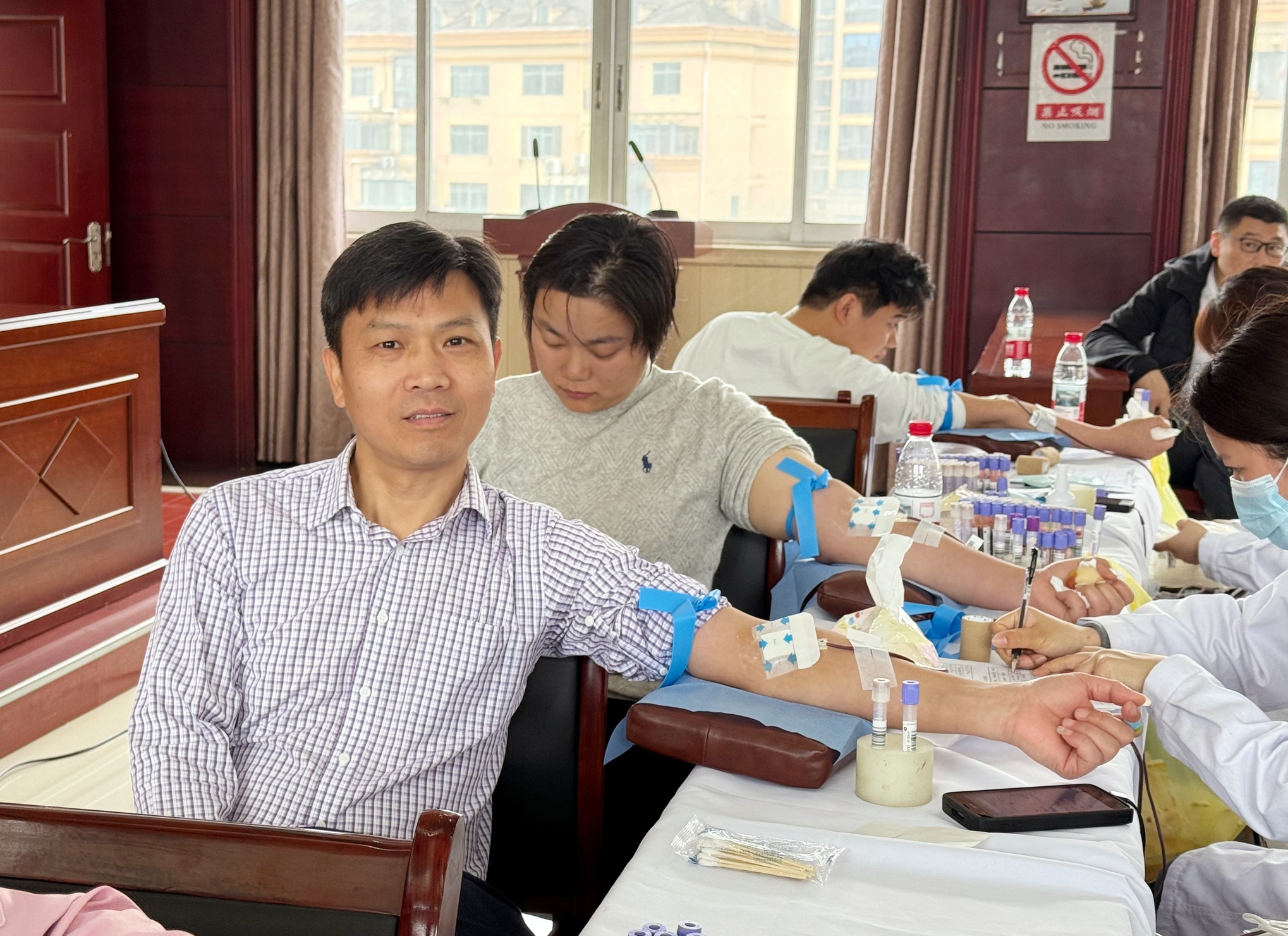 在献血的队伍中,我们不仅可以看到乡镇卫生院院长带头示范的身影,还有许多常年坚持献血的“老面孔”以及初次上阵的年轻医护人员。每一袋温热的血液汇聚成守护生命的暖流,充分展现了医务工作者“敬佑生命、甘于奉献”的职业精神。这种精神不仅体现了他们对患者的深切关爱,也彰显了医疗系统的责任感与使命感。
