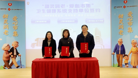 上图:“甜灵润老 爱心市集”卫生健康系统支持单位签约