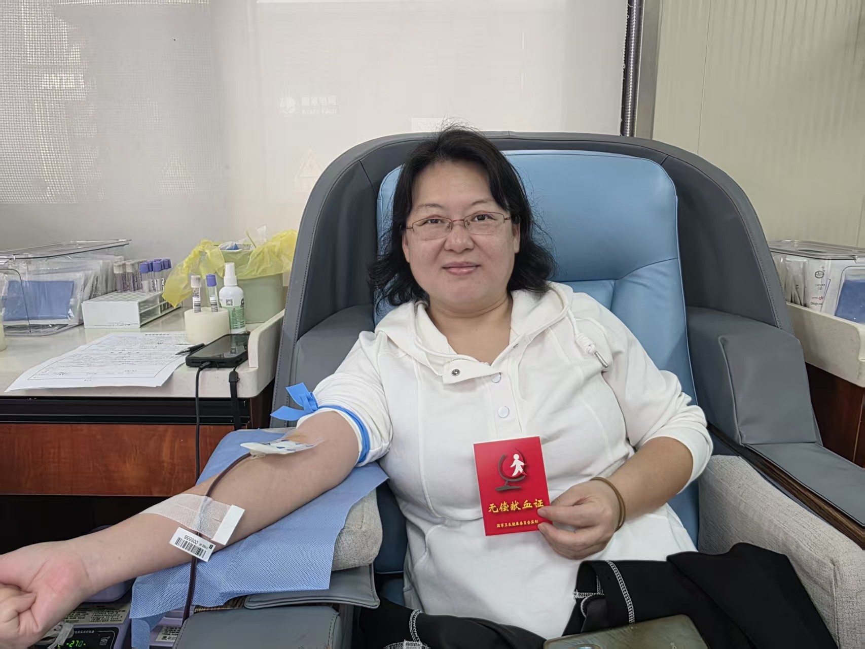 今天的献血现场更显温情,赵筱冉不仅坚守在自己的志愿岗位上,还顺利“招募”了妈妈王余英一同参与献血。坐在献血椅上的王余英是江铃股份有限公司的员工,十余年来累计献血3800毫升,早已是公益行动中的“老熟人”。得知血站需要小志愿者时,她立刻带着女儿报名,希望让公益的种子在孩子心中生根发芽。