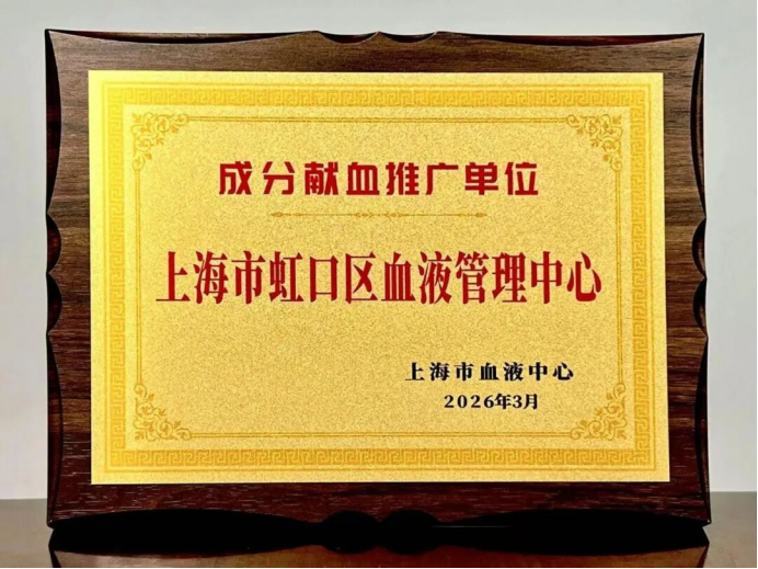 近年来,在虹口区血液管理中心推进下,虹口单采血小板募集量逐年攀升。仅2025年,虹口共募集单采血小板4975单位,为保障本市临床用血做出巨大贡献。虹口区血液管理中心也因此获得“成分献血推广单位”称号。