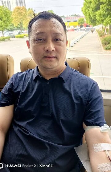 (图为:南阳医专二附院副院长涂云飞在献血)