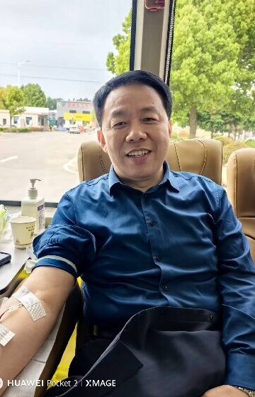 (图为:南阳医专二附院院长时沛在献血)