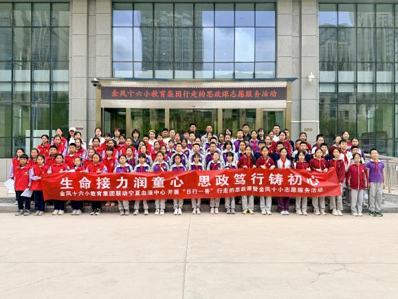为深入开展爱国卫生月活动,将思政教育融入实践课堂,厚植学生奉献向善、关爱生命的美好品德,4月13日,十六小教育集团联合宁夏血液中心开展了“生命接力润童心,思政践行铸初心”爱国卫生月“行走的思政课”志愿服务活动。金凤十小“金十先锋”、十六小“触摸城市的温度”、四十小“马兰花观察团”的学生代表及带队教师齐聚现场,共同开启这场意义非凡的生命教育之旅。