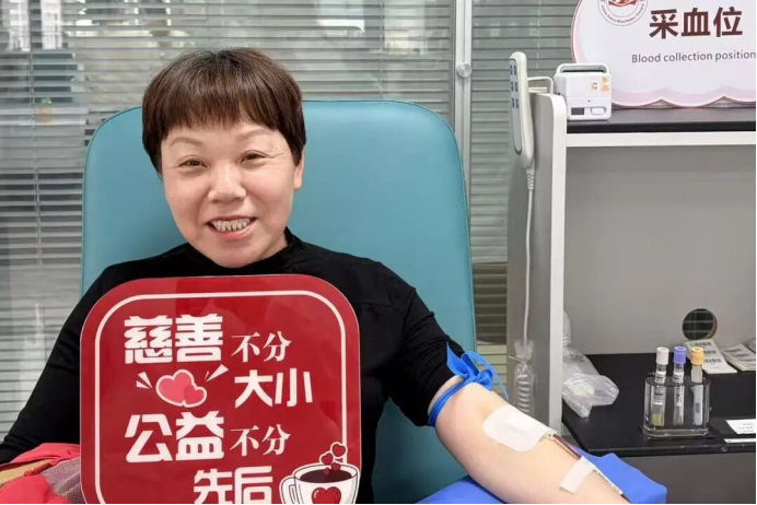 曾荣获“金山好人”称号的朱女士,多年来坚持无偿献血从未间断,她从容淡定地挽起袖子:“有机会救人一命,这事一定要做。”