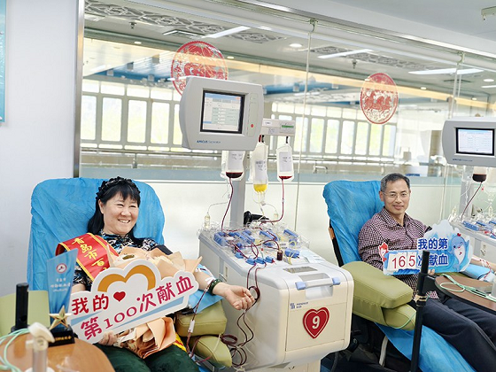 4月19日上午,青岛市中心血站机采大厅内,献血椅上的宋沛沛神情平静。随着血细胞分离机缓缓运转,一个多小时后完成了血小板采集,这是她在青岛的第100次献血。从2017年3月8日第一次挽袖,到如今成为“百次献血者”,这条路,她走了整整9年。她的身边,丈夫马仁山正进行着第165次献血。两把献血椅并肩排列,两个生命通道同时开启。这对结婚27年的夫妻,就此成为青岛市首对携手献血超百次的“热血伉俪”。