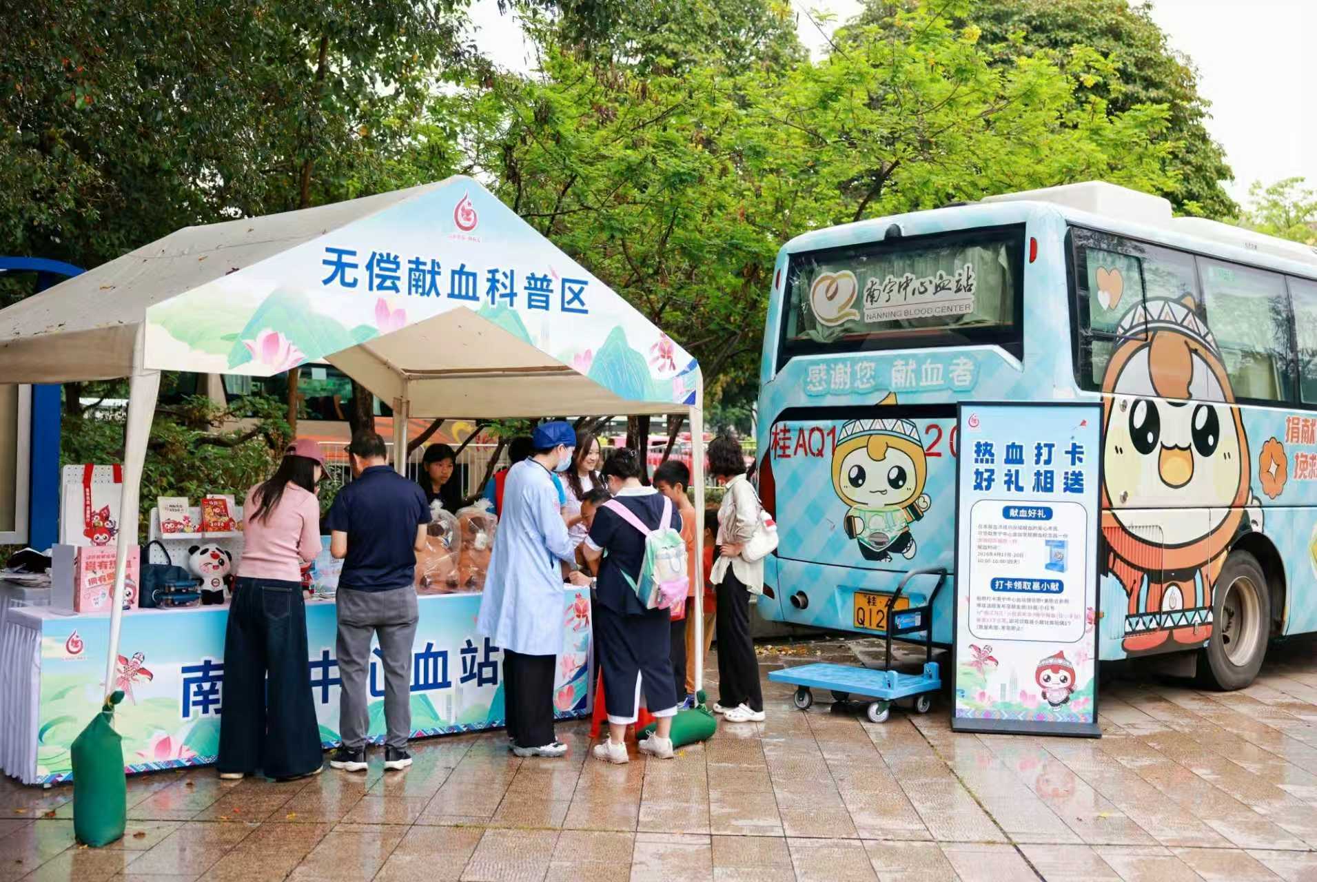 4月16日至20日,正值“广西三月三·八桂嘉年华”活动举办,南宁中心血站在活动主会场民歌湖广场,开展无偿献血公益宣传活动,向市民游客科普无偿献血知识,吸引众多爱心人士踊跃参与。