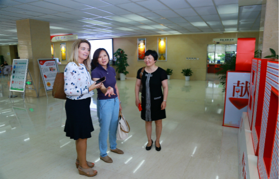 9月4日上午,美国血液中心国际分部ADRP委员会副主席Jennifer Charbonneaux一行到市中心血站参观交流。