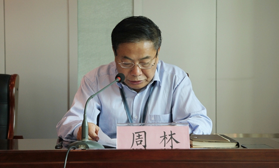 站党支部书记、站长周林代表血站党支部作了主题教育工作的动员部署(于瑞杰 摄影)