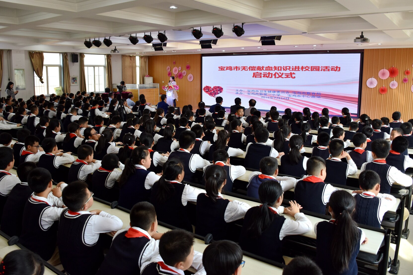 9月24日,由宝鸡市卫健委、宝鸡市教育局联合举办的宝鸡市无偿献血知识进校园活动暨首场宣讲在宝鸡市高新第一小学隆重举行,240名师生参加启动仪式并聆听讲座。