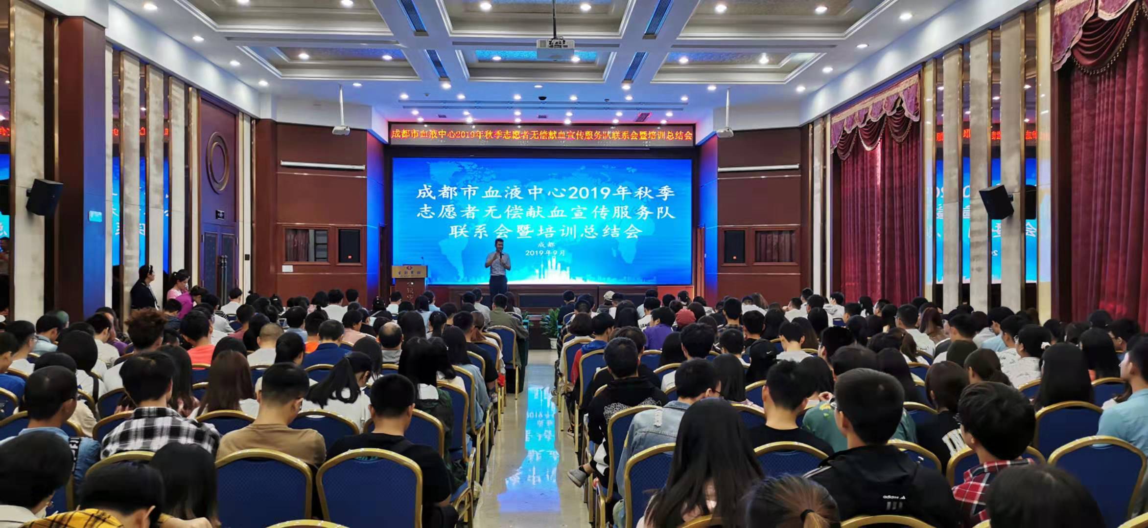 9月22日,成都市血液中心2019年秋季志愿者无偿献血宣传服务队联系会暨培训总结会在雷剑宾馆顺利召开,全市109支志愿者分队的270余名高校及社会志愿者参加会议。