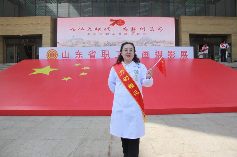 9月25日,全国五一巾帼标兵 山东省富民兴鲁劳动奖章获得者 山东省血液中心 山东省献血办公室王淑荣同志作为省卫生健康系统劳模代表应邀参加山东省总工会“颂伟大时代 为祖国喝彩”山东省职工书画摄影展。王淑荣同志长期工作在采供血第一线,始终恪守“扎扎实实工作,老老实实做人”的人生信条,坚持“无私奉献—血站人永远在路上”的理念,干事创业,默默奉献,在平凡的工作岗位上做出了不平凡的业绩,为无偿献血事业增添了绚丽光彩。
