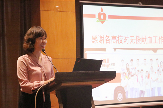 浙江省血液中心献血服务一科主任潘凌凌总结了2018-2019学年在杭高校无偿献血情况,并对校园献血活动中存在的问题提出了改进意见。