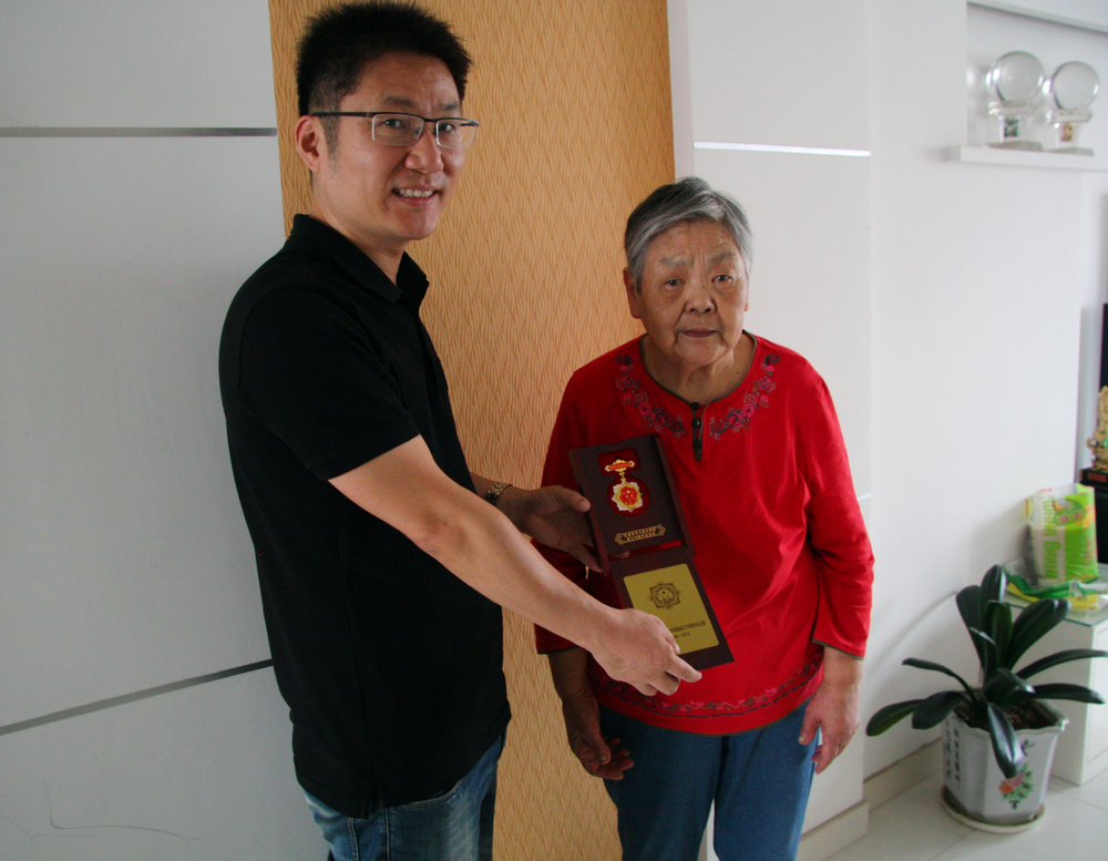 在中华人民共和国成立70周年之际,9月27日下午,盐城市中心血站副站长乐永辉、办公室主任张剑等到单位离休老干部江桂芳家中看望慰问。乐永辉详细询问了江桂芳的身体健康状况和生活情况,转交了由中共中央、国务院、中央军委向新中国成立前参加革命工作的老干部、老党员颁发的“中华人民共和国成立70周年纪念章”,并送上慰问金,祝愿她健康长寿、幸福安康。
