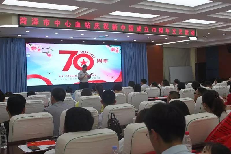 9月29日下午,菏泽市中心血站庆祝中华人民共和国成立70周年文艺联欢活动在血站六楼多功能厅拉开帷幕。巨昆站长致辞,感谢全站职工为血站的建设与发展所付出的辛劳,肯定了所有血站人敬人致诚,敬业致精的精神风貌,表达了同庆华诞的喜悦心情、携手圆梦的信心和决心,并祝愿伟大的祖国繁荣昌盛。 近几年来,血站尊照“博爱、奉献、优质、规范”的血站精神,凝心聚力干事业,励精图治谋发展,呈现出采供血量稳步增长、血液质量安全可靠、全站和谐稳定的良好局面。24年来,菏泽中心血站接受无偿献血814000人次,全市有411000人献出331吨爱心血液,挽救了数以万计人的生命。菏泽市11次荣获全国无偿献血先进城市称号,菏泽市中心血站也140多次受到各级表彰。