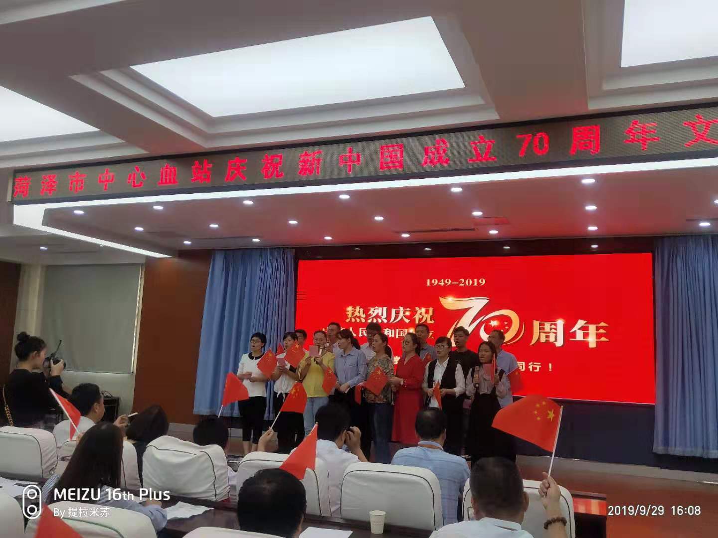 70年峥嵘岁月,70年砥砺奋进。为庆祝新中国成立70周年,表达对祖国母亲的热爱,9月29日下午,菏泽市中心血站举行了庆祝新中国成立70周年文艺活动,用一场精彩的文艺演出,深情献礼新中国成立70周年。
