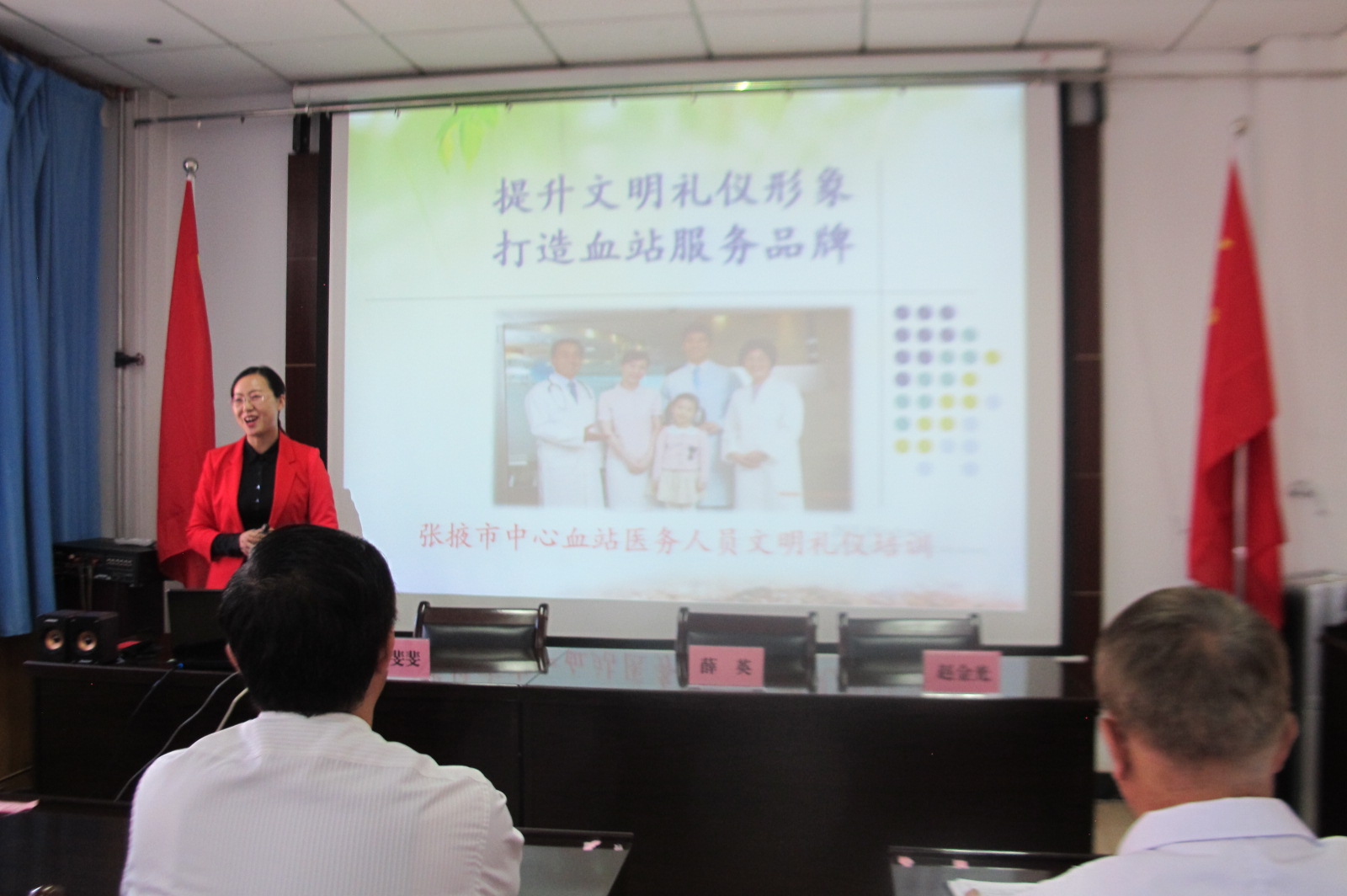 市委党校庞斐斐老师从着装、仪容、举止、表情、沟通、接待、电话等基本礼仪、医务礼仪、血站医务人员礼仪等方面作了细致的讲解,案例生动,内容丰富,既有理论阐释又有亲身示范。全体干部职工一致认为,我们血站是一个为献血者、志愿者、广大市民服务的爱心团队,要熟练掌握基本文明礼仪,不断增强文明意识,努力打造一支讲文明、重礼仪,讲团结、重服务,讲奉献、重形象的专业采供血队伍。