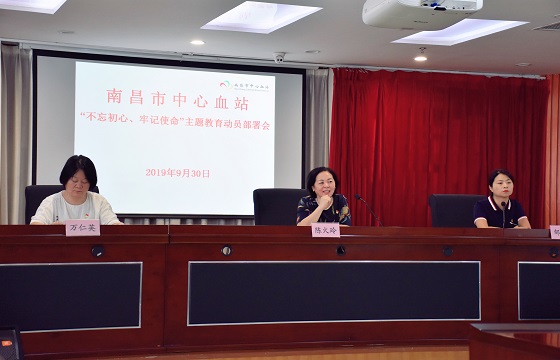 9月30日上午,南昌市中心血站党支部召开“不忘初心 牢记使命”主题教育部署会。会议由副站长邹丽敏主持,站长陈火玲做主题教育部署讲话。站班子成员、中层干部和全体党员同志参加了会议。