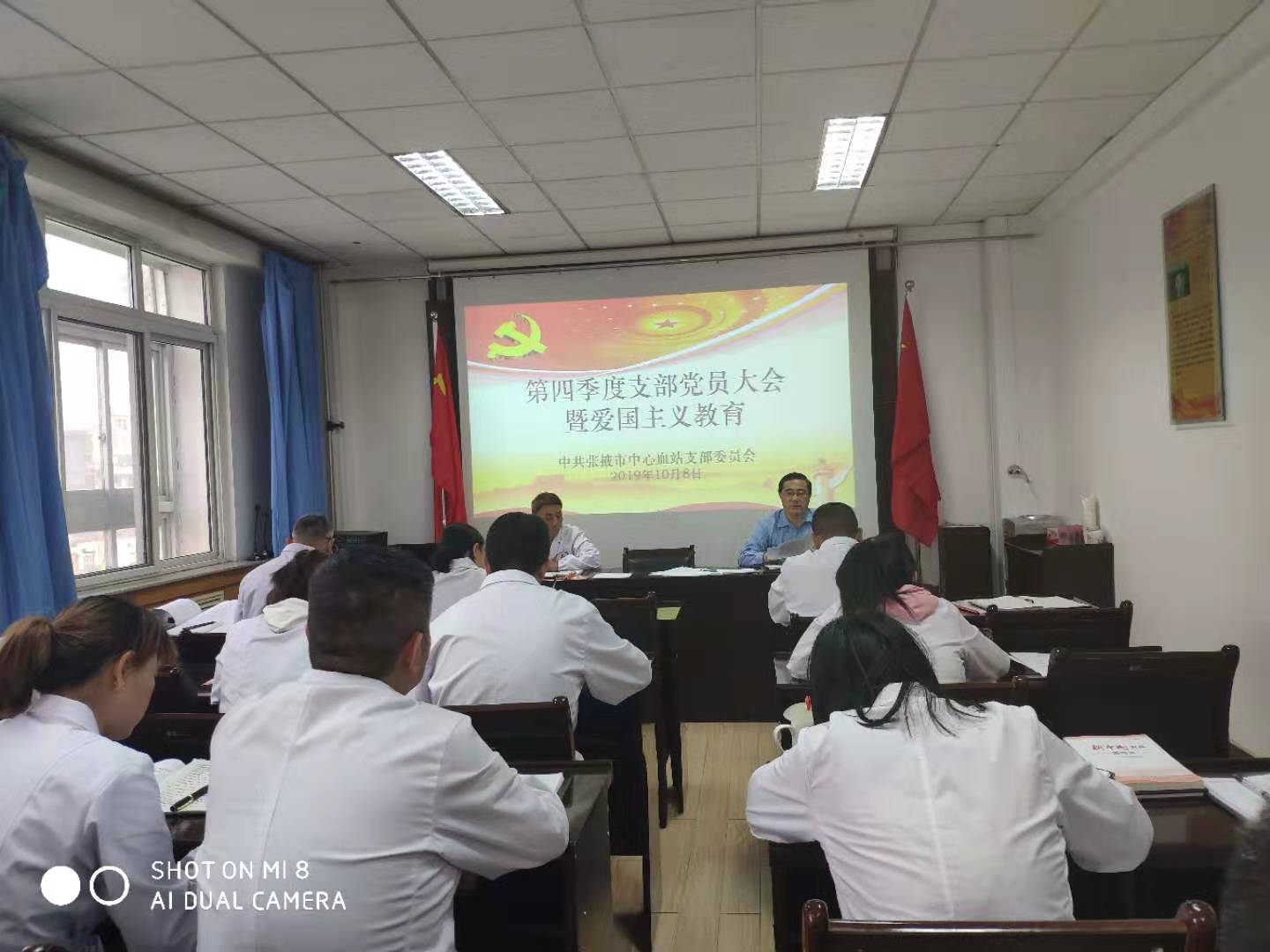 张掖市中心血站按照张掖市委组织部通知要求,于10月7日下午召开支委会扩大会议,专题研究召开党员大会事宜。结合工作实际,10月8日上午8时召开党员大会,进行爱国主义专场教育。会议由支部书记、站长薛英主持,全体党员干部职工参加。