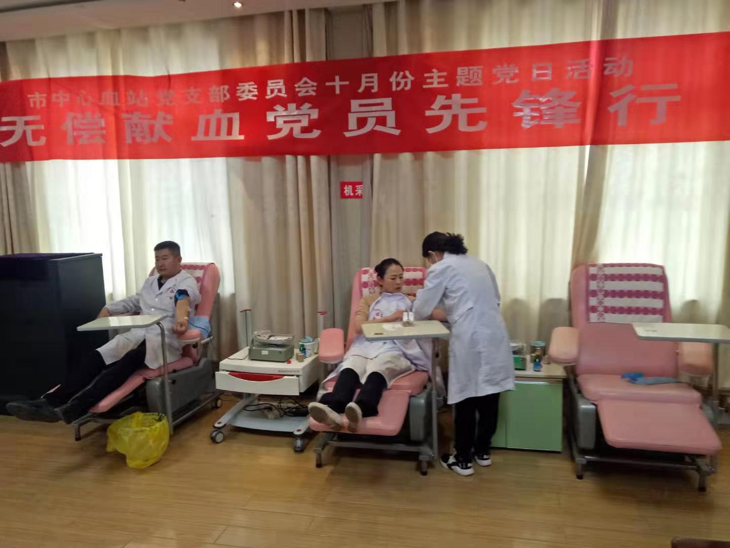 会议首先奏唱了《国歌》,全体党员面对党旗重温了入党誓词。会议学习了习近平总书记在纪念建党95周年大会上的重要讲话、在庆祝中华人民共和国成立70周年大会上的重要讲话及习近平总书记《论中国精神》。4名党员分别作了观国庆阅兵盛典、学重要讲话精神的大会交流发言。结合实际,支部书记、站长薛英作了新中国70年发展成就专题党课。会后,全体党员带头进行了无偿献血,用实际行动践行了入党誓词、爱国精神。
