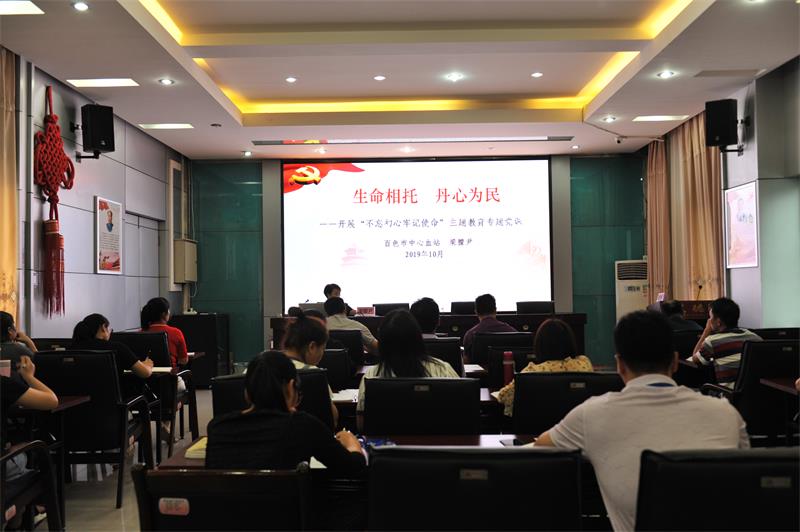 百色市中心血站持续深入开展“不忘初心,牢记使命”主题教育。10月12日下午,血站党支部书记、站长梁朦尹在多媒体教室给全体党员、入党积极分子及中层领导干部上了一堂题为“生命相托 丹心为民”的专题党课。
