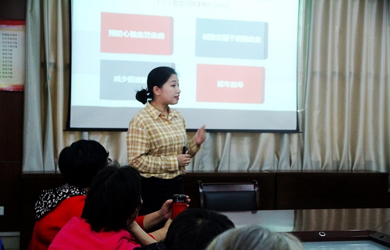 南昌市中心血站办公室科员吁晨洁是本次宣讲活动的主讲人,她围绕南昌市目前无偿献血以及临床用血现状,用大量丰富多彩的PPT图文,为大家由浅入深的讲解了有关无偿献血以及血液、血型等知识,进一步普及了献血无损健康的科学常识和献血者免费用血优惠政策等方面的内容。从享受血费报销政策的角度,让社区居民们意识到无偿献血可以减轻家庭经济负担,所谓一人献血,全家收益,无偿献血也就是在“血液银行”里为家人做一份健康“投资”。尤其在看过宣传视频以及献血救人事例之后,在场许多社区阿姨大妈们都认识到了血液对临床医疗和对自己的重要性,课程中大家热烈的讨论着自己的血型并积极举手回答宣讲人的问题。