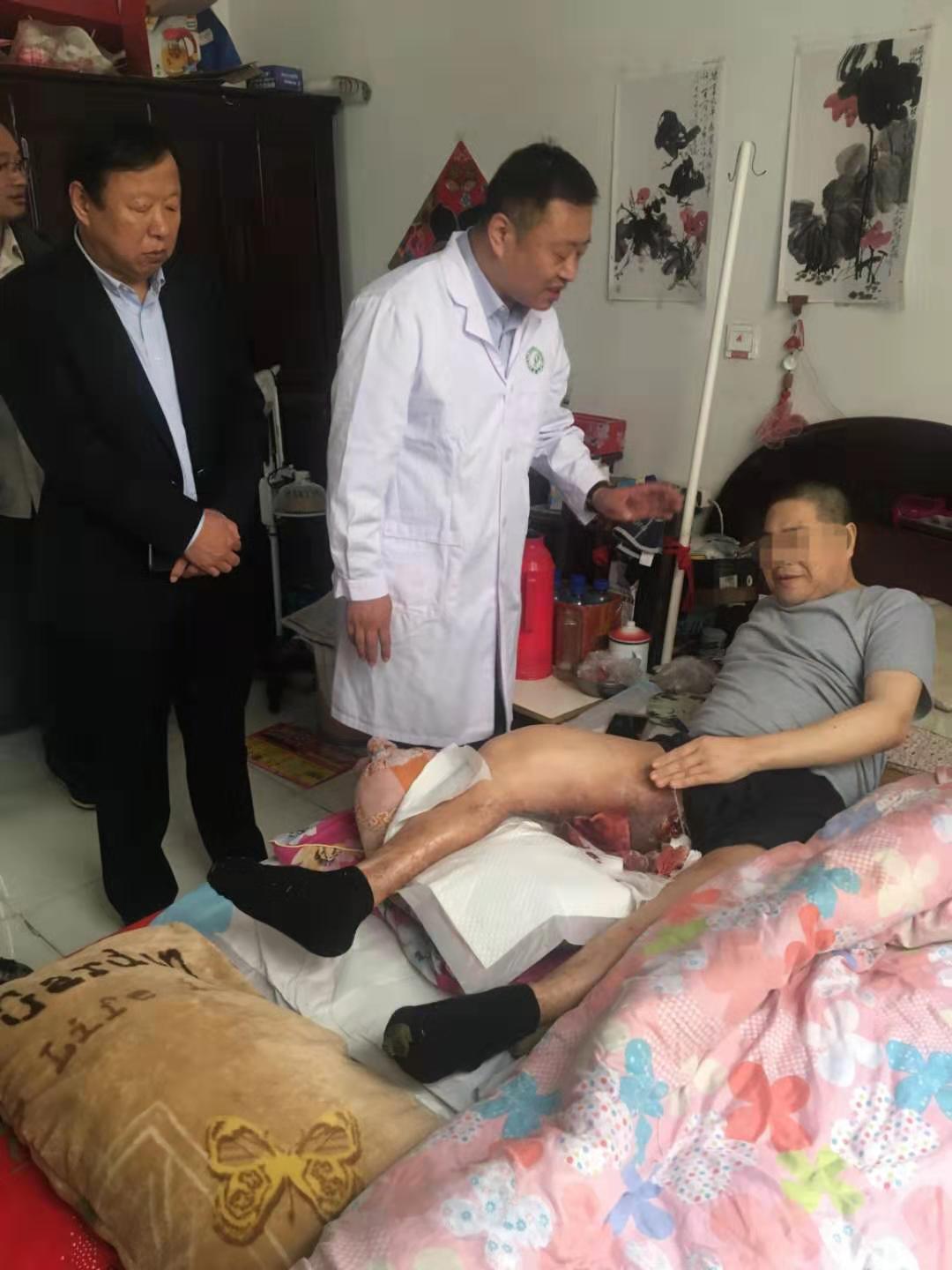 罗庄区的血友病A患者,本是一名中间型的患者,却因一次意外摔伤引起大腿肌肉血肿形成瘘道,因经济困难,没有进行规范治疗,从此瘫痪在床。这次看到前来慰问的工作人员,十分激动。工作人员为他带来凝血因子,进行了血友病知识宣教,提供医保报销的政策分析的指导,不仅减轻了患者经济负担,也带来了精神上抚慰,给予患者生存的信心。