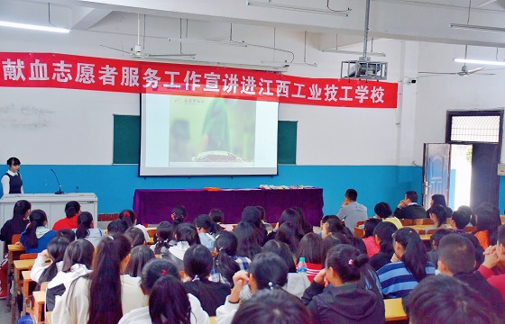 不论是刮风下雨或是严寒酷暑,不论是在街头献血点或是团体献血活动现场,都可以看见红马甲的身影……”。10月17日下午,来自南昌市中心血站无偿献血健康科普宣讲团的宣讲员周晶影走进了江西工业技工学校,为校团委的老师、同学们共127人带去了一堂关于志愿者服务与献血科普知识的课程。