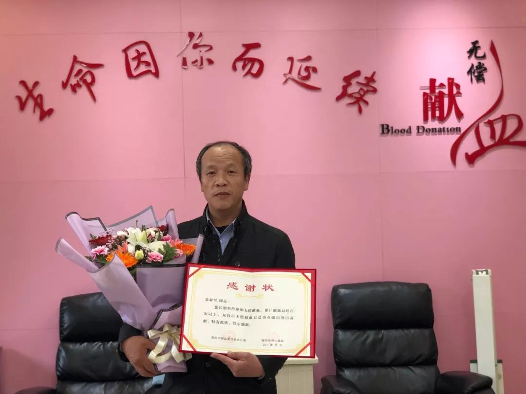 洛阳血站:洛阳市百次无偿献血英雄谱:第108位黄亚军