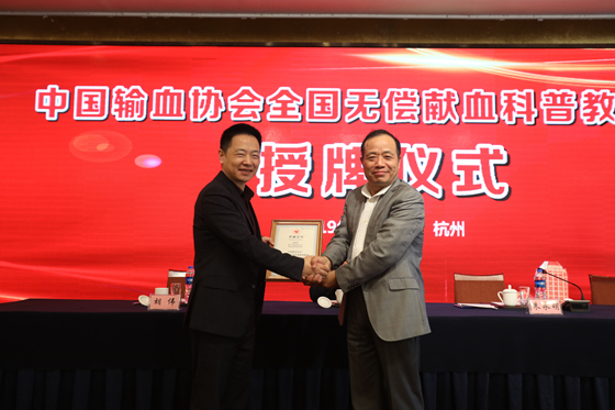 2019年10月29日,浙江省血液中心正式加入中国输血协会“伙伴计划”。朱永明理事长向浙江省血液中心颁发“中国输血协会全国无偿献血科普教育基地(2019年度伙伴计划)”荣誉证书。浙江省采供血系统、医疗机构输血科等200余位同仁见证了这一重要时刻。