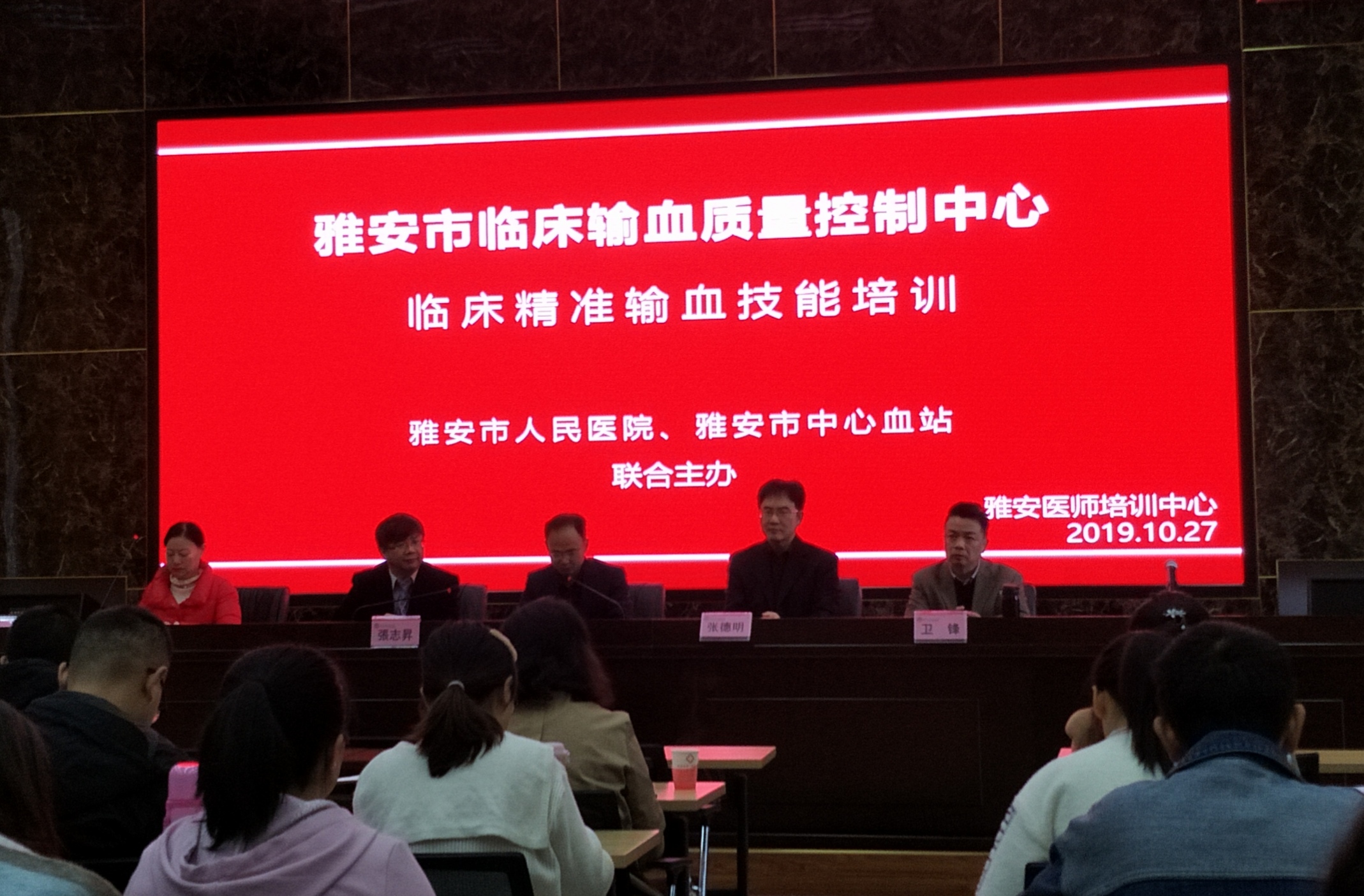 市临床输血质量控制中心在雅安市医师培训中心联合主办临床精准输血技能培训班,来自市、县(区)各级医疗机构和采供血机构100余人参加培训。市卫健委分管领导李浩、市临床输血质量控制中心主任张德明、市中心血站副站长卫锋出席并讲话。
