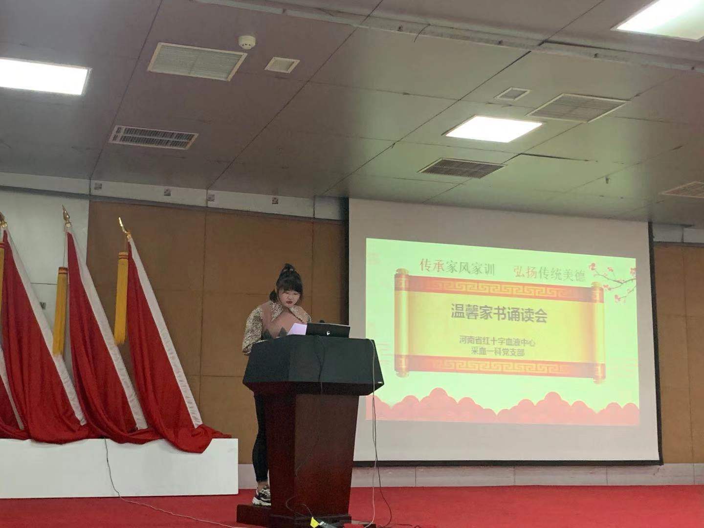 10月16日下午,按照中心党委关于组织开展“树家风、立家规、传家训、写家书”活动的通知精神,采血一科党支部在七楼多功能厅举办“传承家风家训 弘扬传统美德”温馨家书诵读会,讲述家书故事,共话人间真情。
