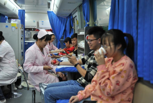 无数满怀爱心的同学响应市中心血站的号召,撸起衣袖捐献挽留生命的血液。他们当中,有因自己患晕血症不敢直视血液而躺着也要完成捐献的同学,也有整个宿舍一起来完成爱心壮举的同学,活动现场充满正能量。