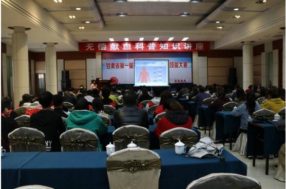 10月15日下午,甘肃省血液中心在甘肃省兰州市西北宾馆举办了无偿献血科普知识讲座,这也是2019年健康中国行主题宣传活动甘肃省健康科普进万家内容之一。省卫生健康委员会宣传处处长苏平、省血液中心副主任张支凤及科普专家、全省14个市州15家采供血机构和24家医院输血科及兰州市高校无偿献血志愿者近百人参加。