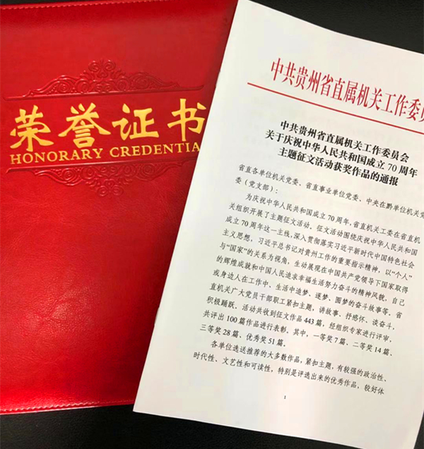 贵州省血液中心职工获“我和我的祖国”主题征文活动优秀奖
