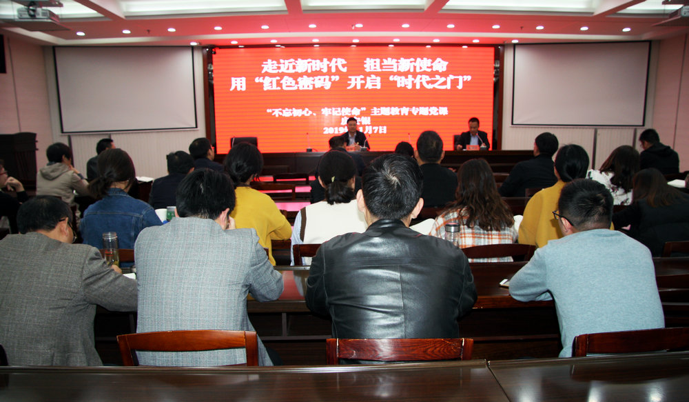 11月7日下午,盐城市卫健委副主任、党委委员房安银为血站全体党员干部上“不忘初心 牢记使命”主题教育专题党课,站党支部书记、站长葛健民主持会议。