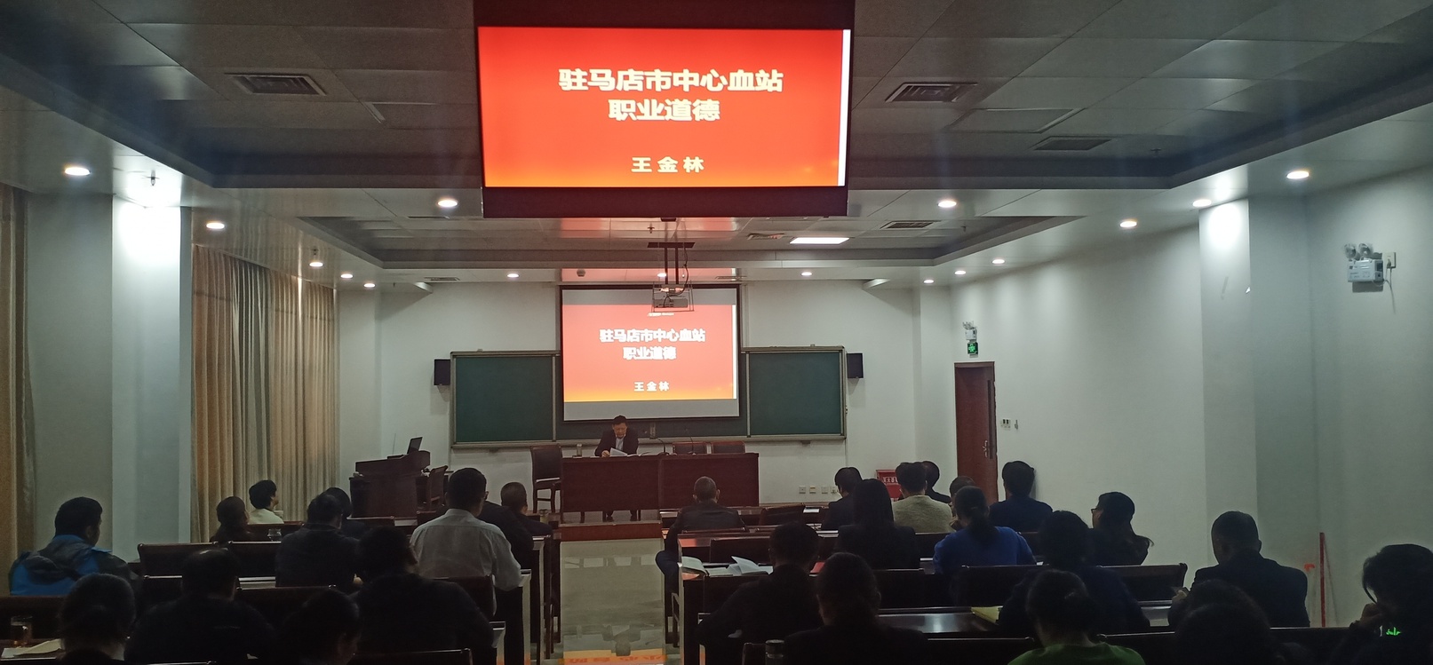 近日,驻马店市中心血站召开职业道德教育专题党课,支部书记、站长王金林主持会议并讲话,全体职工参加培训。