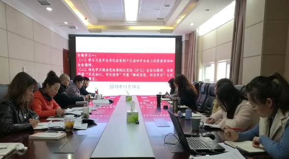 11月19日,雅安市中心血站党支部召开学习党的十九届四中全会精神专题会,对全会精神进行解读学习。支部书记喻琼主持会议。