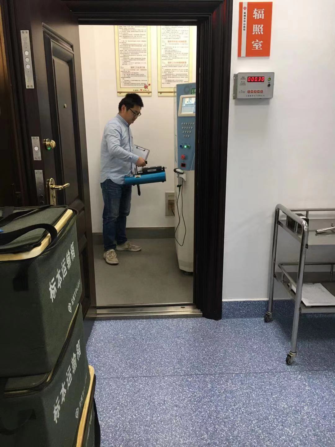 近日,江苏省辐射环境检测部门对盐城市中心血站血液辐照环境进行年度检测。检测人员在血液辐照室内利用FH40G型便携式ⅹ-γ辐射剂量率仪,对血液辐照仪四周屏蔽体外5cm及1m等处,布设γ辐射剂量率检测点进行检测,检测结果均符合相关要求,血液辐射环境安全。