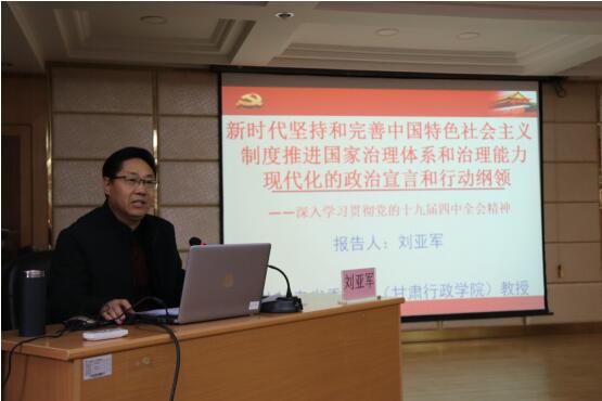11月27日,甘肃省血液中心邀请省委党校科学社会主义教研部刘亚军教授进行十九届四中全会精神专题辅导,会议由中心党委书记王常虹主持,全体职工参加。