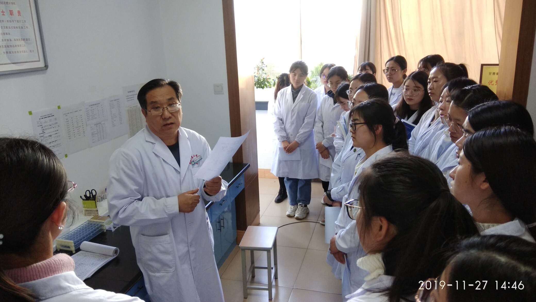 根据《临床输血学检验技术》教材设置及大纲要求,11月份由平凉市中心血站输血医学教研室为甘肃医学院医学检验专升本1803班50名同学安排了实验、见习以及社会实践课程,通过实验操作、现场讲解、参与社会实践等课程使同学们进一步掌握了相关理论知识和实验操作技能,学会了与不同人群之间的沟通交流。培养学生实验操作“标准化、规范化”的意识,树立学生成为一名合格的医务人员及检验人员应该具备的职业道德和素养。11月10日在崆峒献血屋进行了见习和社会实践活动。11月21日在平凉市中心血站血液调配科、血液安全筛查科进行了见习和实验。11月27日 在平凉市第二人民医院输血科、平凉市中心血站成分科进行了见习和实验课程。