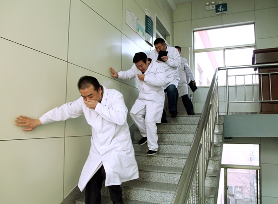 血站干部职工组织开展火灾逃生安全演练(于瑞杰 摄影)
