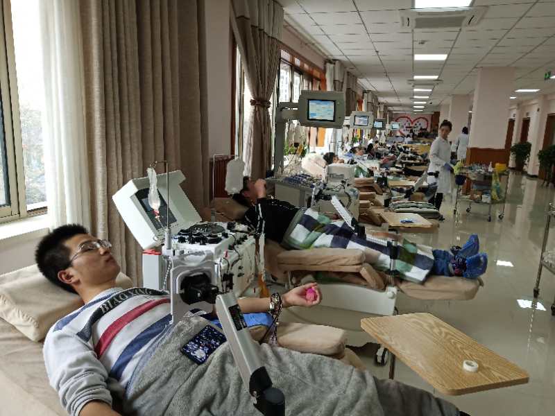 一早,同学们坐着血液中心的接送献血员的车,到达了安宁献血俱乐部。同学们有序地排起长队,依次进行信息登记、体检化验、血液采集等环节。在等待献血期间,大家紧张而兴奋,其中不乏参加过好几次献血活动的同学,但是他们仍旧为自己的行动能给需要的人提供帮助、挽救更多的生命而感到高兴。